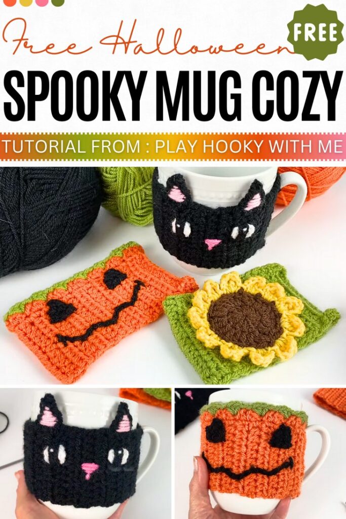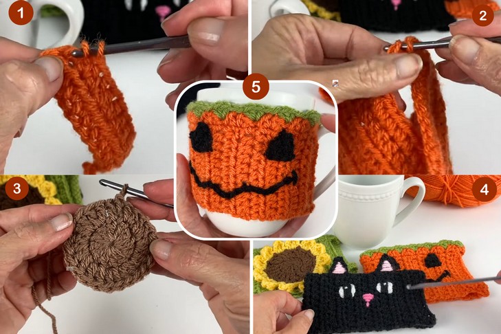 How to Crochet Halloween Mug Cozies (Pumpkin, Sunflower & Cat)