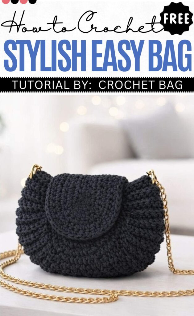 Learn how to crochet a handmade shoulder bag with ribbed fabric and a golden chain as a strap. When crocheted in black, it gets a royal finish. It will have a strap and can be used as a clutch, should bag, or a purse. It will feature a circular, canteen-style silhouette.