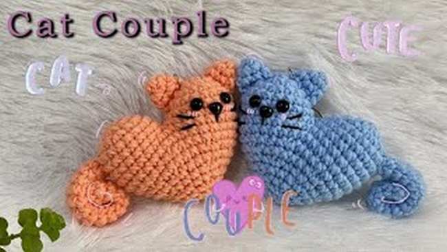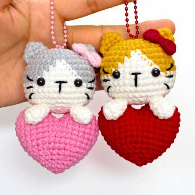 16 of 17 Crochet Heart Couple Cats