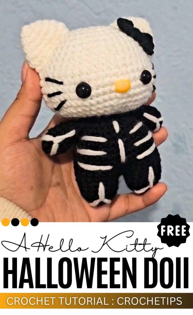 If you want something as cute as Hello Kitty even in Halloween, try this soft and squishy crochet Skull Hello Kitty doll following a 2-part video tutorial. With lovely skull embroidery and low-sew design, this Hello Kitty doll variation will instantly become a favorite!