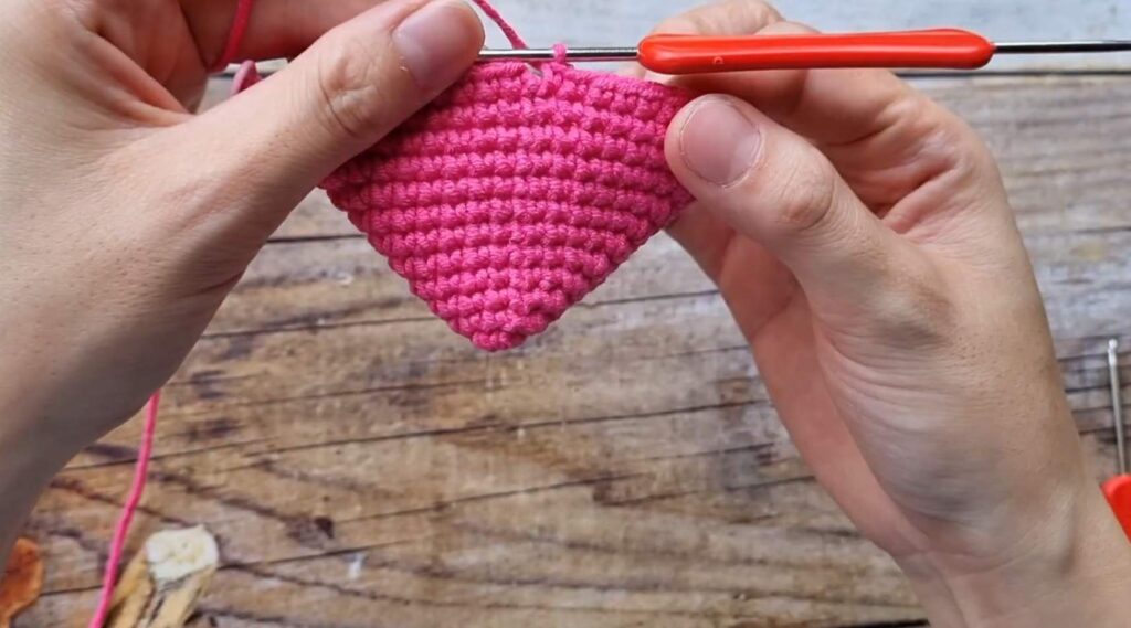 Rnd 2–11: 1 dc in each st around (through both loops). Join with ss, ch 1.