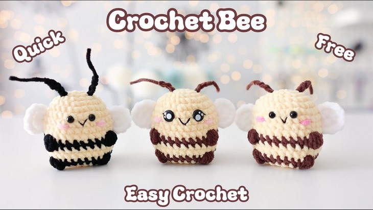 Kawaii animal amigurumi are always irresistible and a must-have! So, learn how to crochet this quick and easy kawaii bee plushie as your next desk buddy with a stitch-by-stitch tutorial from KumoAmu. This bee plushie is chubby, no-sew, and features the kawaii safety eyes that look simply oh-so cute! You can crochet it in three versions: a yellow and brown bee, black and yellow bee, and a bee with simple eyes. You will especially love its long antennae the blush and the wings separately attached. You can complete crocheting this as a gift in just 30 minutes, whether you are a beginner or an expert.