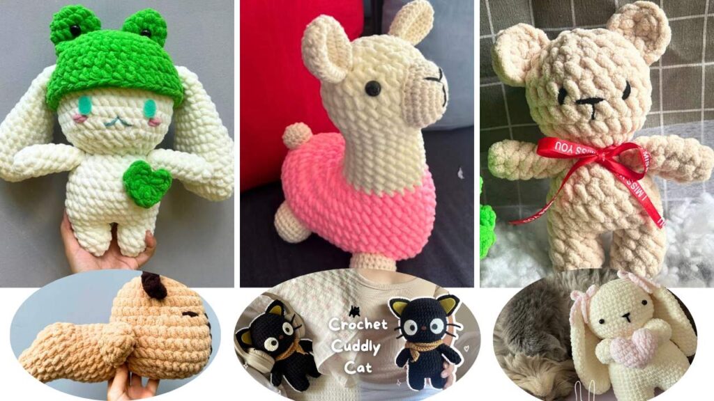 With super bulky yarn, you can crochet super soft and plush kawaii characters. Here are 9 free crochet kawaii big plushies with stitch-by-stitch instructions as my recommendations. These will be low-sew and mostly can be finished within an hour.