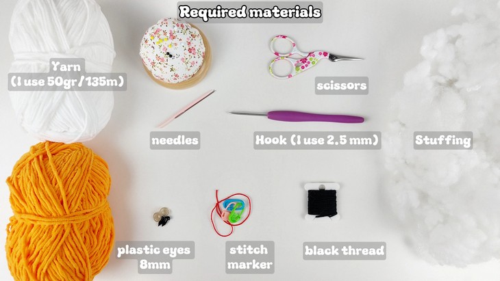 - Yarn: A thin plush yarn roughly 2mm, where a 50-gram skein is approximately 135 meters long. (Commonly a fingering or light sport weight).