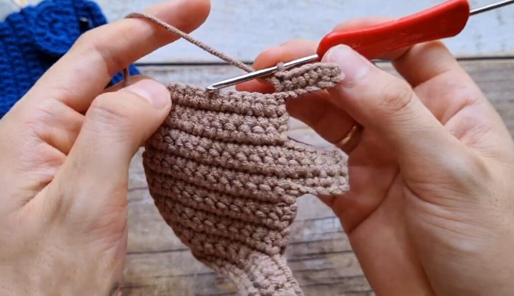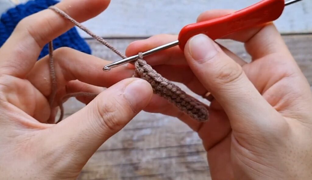 Row 10: Turn. Sc in 2nd ch from hook and next 3 ch, sc in next 12 sts of body. (16 sts)
