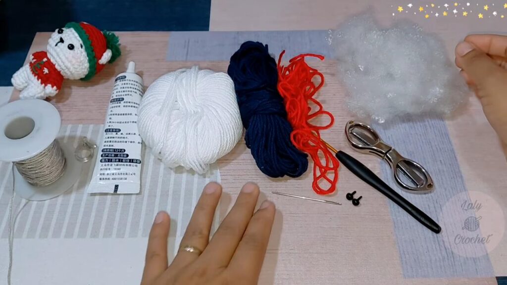 The tutorial for the crocheted Christmas Polar Bear uses the following materials: