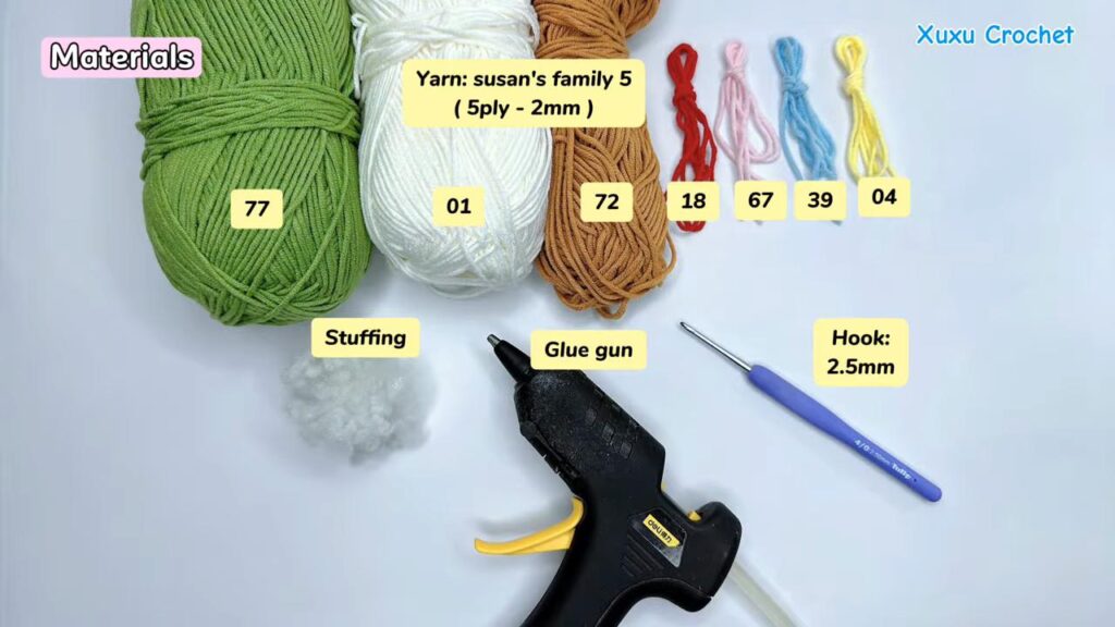 - Milk Cotton Yarn (Len Susan 5): 2 mm thickness, in multiple colors, including: