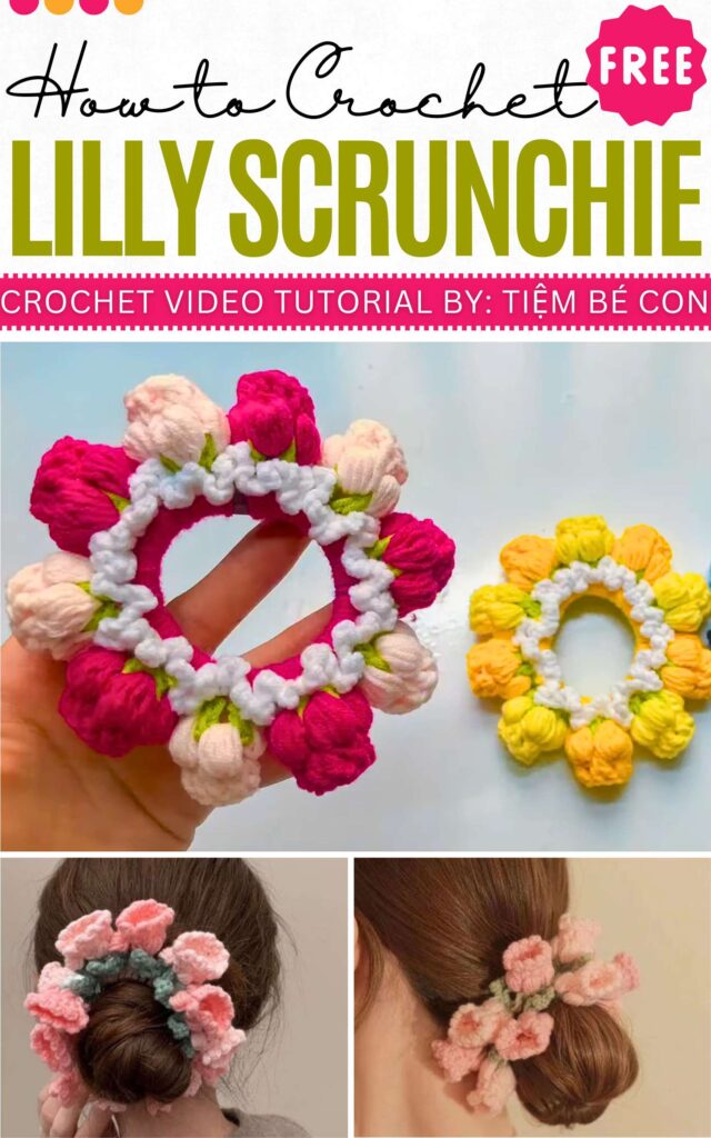 Looking for a clever way to crochet Lily of the Valley? Crochet this scrunchie with the 3D Lily of the Valley edging that is oh-so best for the spring. You can choose from pink, orange, or pastel scrunchies with the alternating light and dark shades for each bloom.