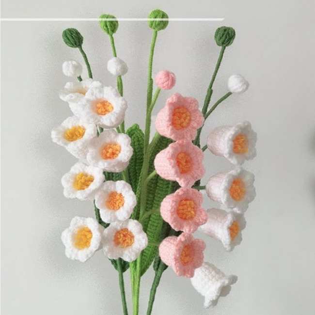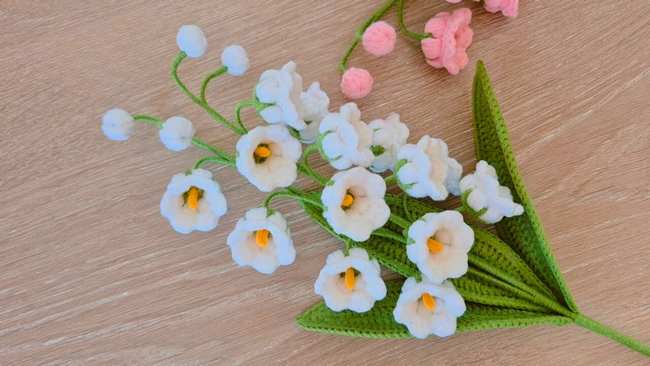 Try this comprehensive guide for beginners to crochet a beautiful Lily of the Valley flower branch. The process is broken down into creating individual flower bells, small buds, and wired leaves using milk cotton yarn and a 2.5mm hook.
