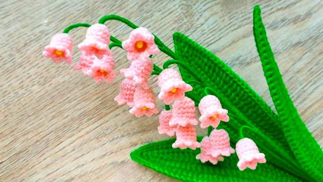 Let’s learn how to crochet a pink Lily of the Valley flower and the branch, perfect for adding in the vase. Starting with a magic ring and progressing through rounds of increasing and basic stitchesyou can easily crochet a bell blossom.