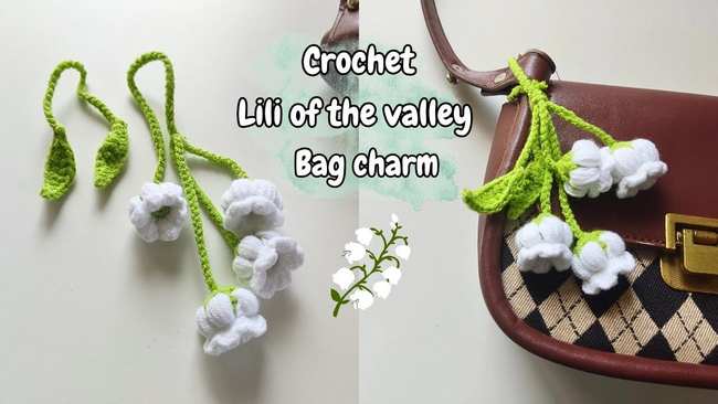 Try this step-by-step tutorial on how to crochet a Lily of the Valley bag charm. The tutorial is broken down into three main parts tions: crocheting the bell-shaped flowers using a puff-stitch technique, crocheting the green leaves and stems, and finally assembling all the components.