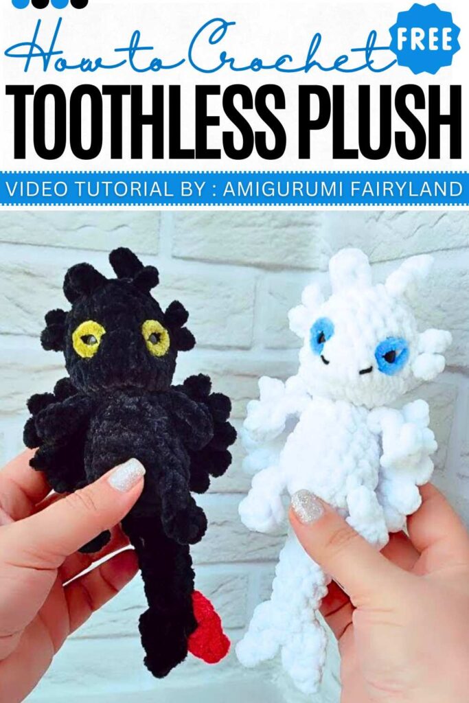 Learn how to crochet Toothless and the Light Fury dragon plushies with this two-in-one tutorial. Crochet using the chenille yarn and a 4.5mm hook to crochet these 20cm long dragons. Crochet the wings and the tail, featuring specialized details like the tail fins.