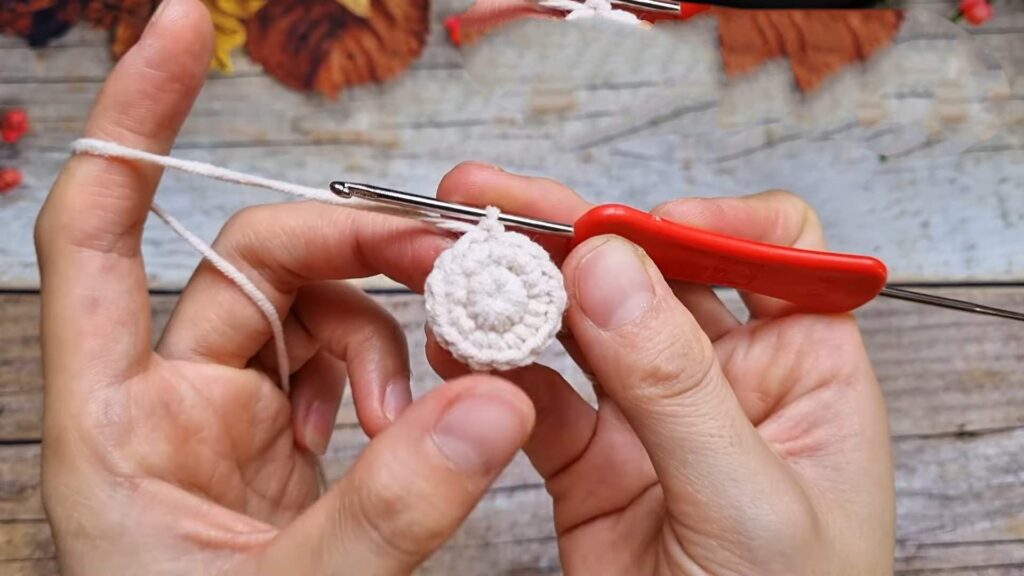 R2–R4: ch 1, sc around. Sl st to join. [8]