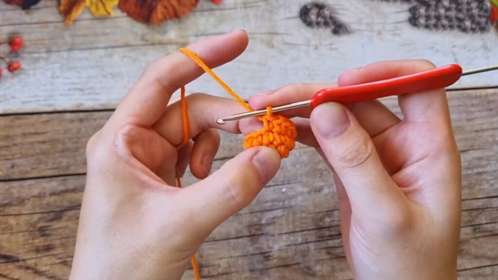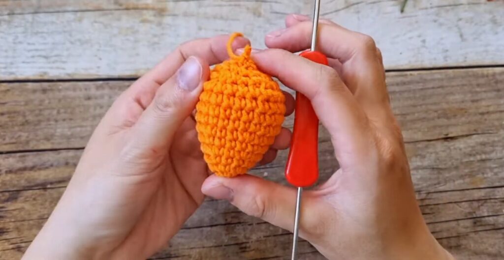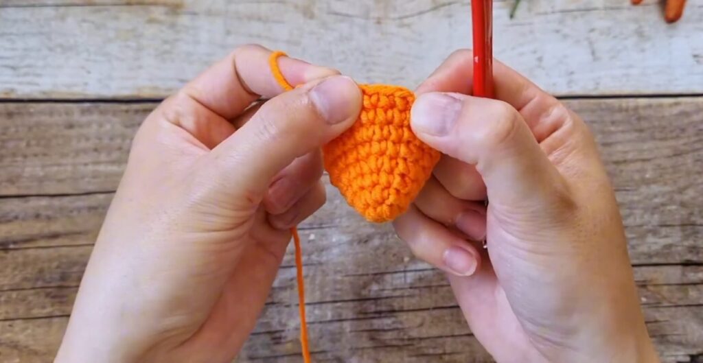 Crochet the carrot: Make a small orange cone and fill it with soft fluff.