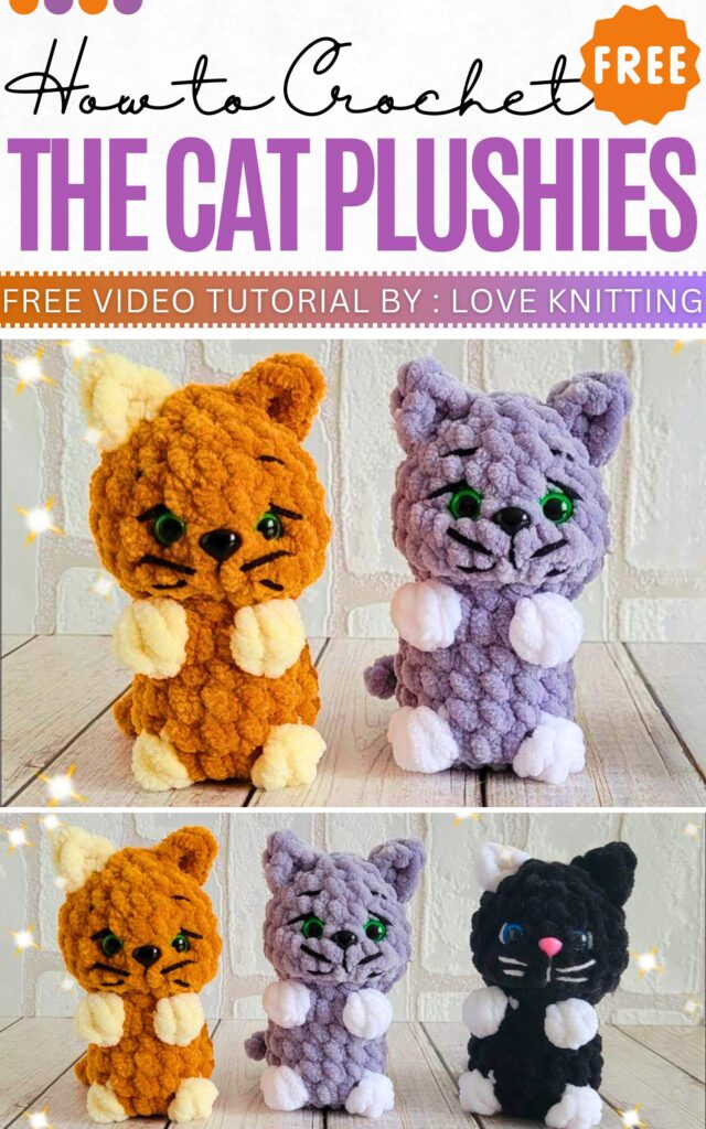 Now crochet a sitting long cat plushie with bulky yarn and the two-color eyes. This 10 cm tall plushie is completely no-sew and looks so cute with the embroidery around the eyes. Eyelashes and eyebrows look so cute on this plushie.