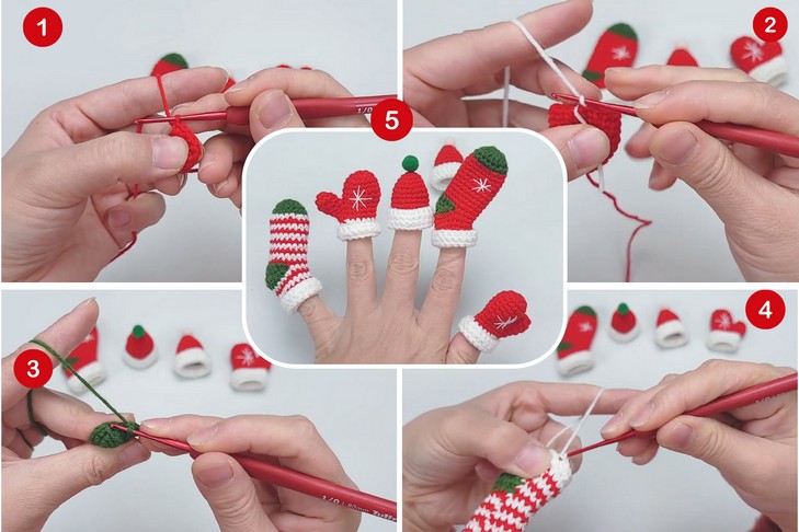 Or use the plush yarn for a shiny finish. Then crochet the miniature versions for a dollhouse or larger ones for a festive garland. The tutor’s suggestion is to neatly join the thumb and hand pieces of the mitten without leaving any gaps.