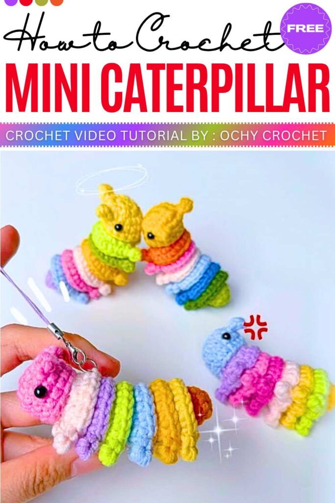 Brighten up your day with this colorful, multi-segmented caterpillar. By crocheting several small spheres and joining them together, you can customize the length and colors of your garden friend. It’s a great way to use up leftover yarn and makes a cheerful accessory or desk pet.