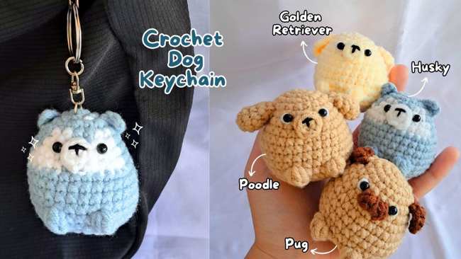 Whatever your favorite dog breed is, these 11 free crochet mini dog patterns will help you make that one. From the Poodle, the Pug, and the Beagle to the Retriever, Husky, and Corgi, these 3-in-1 to 2-in-1 tutorials will teach you everything. All these are no-sew, full of colors, and also feature dogs with the belts. You can use them as keychains and bag charms.