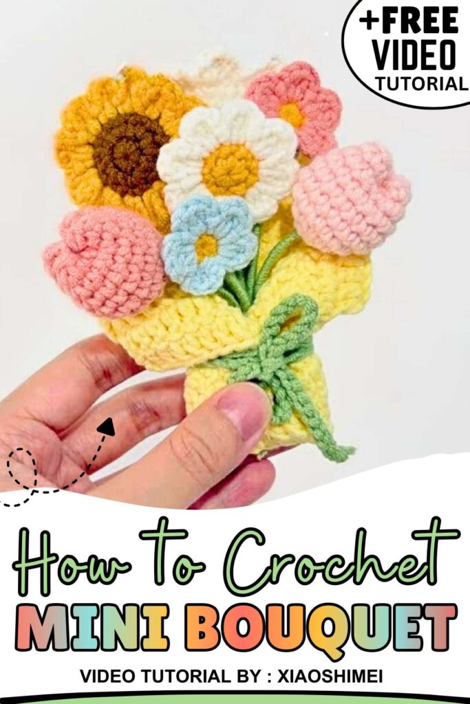With this tutorial, you can learn how to crochet a single-flower bouquet wrap with quick instructions for crocheting a sunflower, a looped-petal daisy, and an amigurumi tulip. All these will be covered in one tutorial, 11 minutes for beginners.