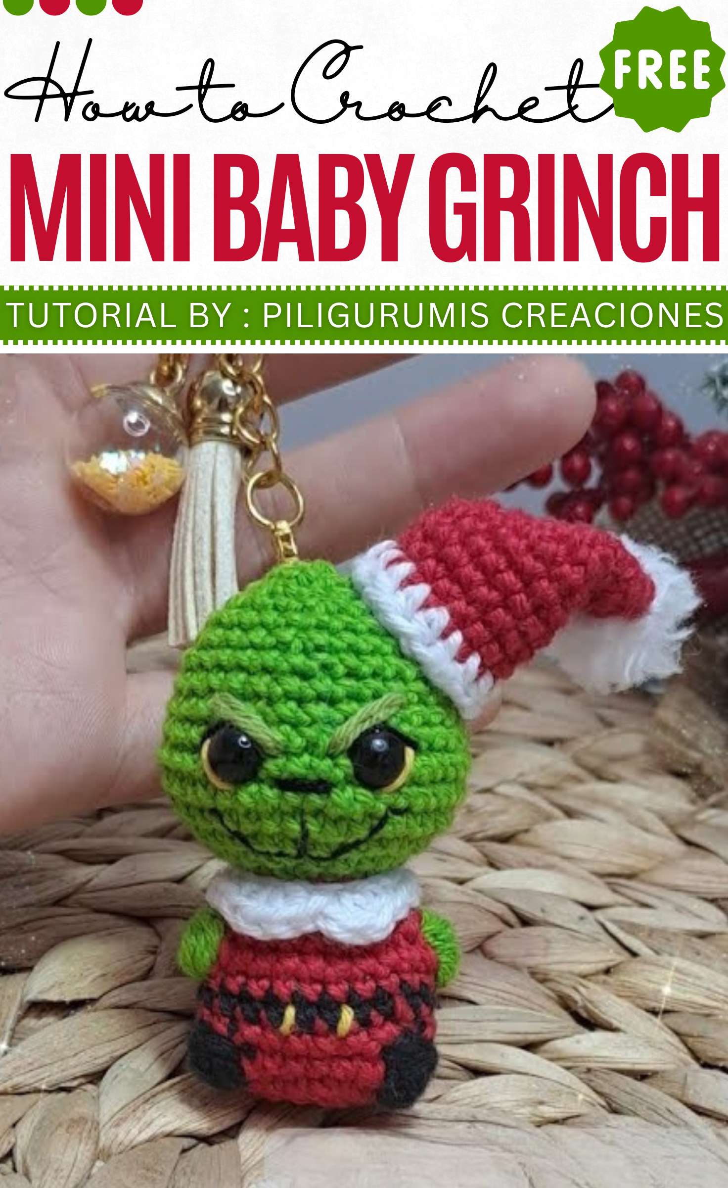 Follow this tutorial to crochet a miniature Grinch doll wearing a Santa suit that is low-sew and quick to crochet. With the thin yarn, this crochet Grinch is detailed and has eyes with lovely embroidery like eyelashes, part of an eyeball, and a detailed mouth.