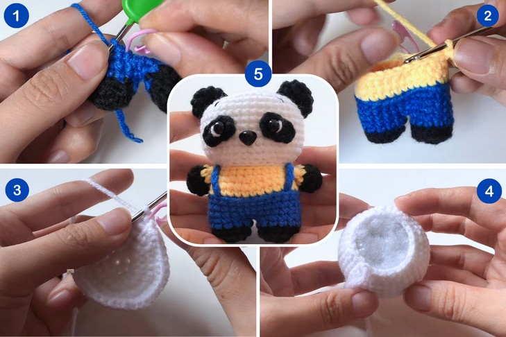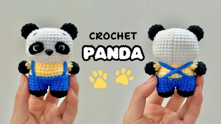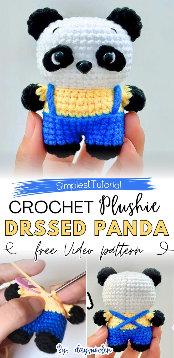 Crochet Mini PANDA Bear in Overalls Doll for Beginners
