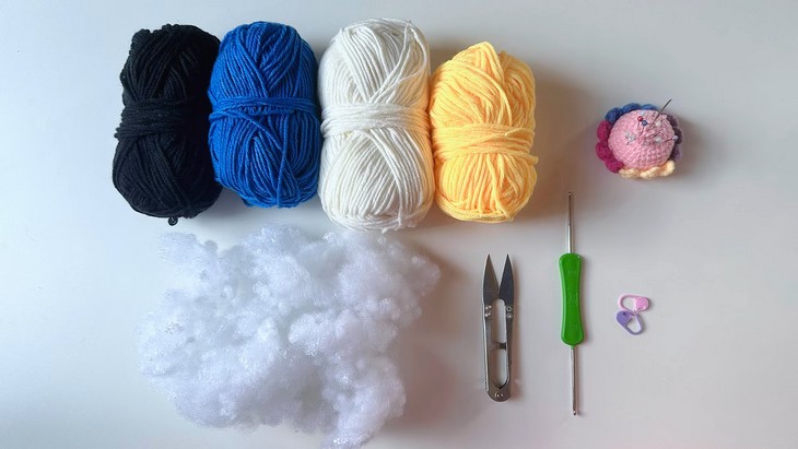 The tutor has mentioned this list of materials and tools for the mini panda doll project for beginners. Gather all for similar results:
