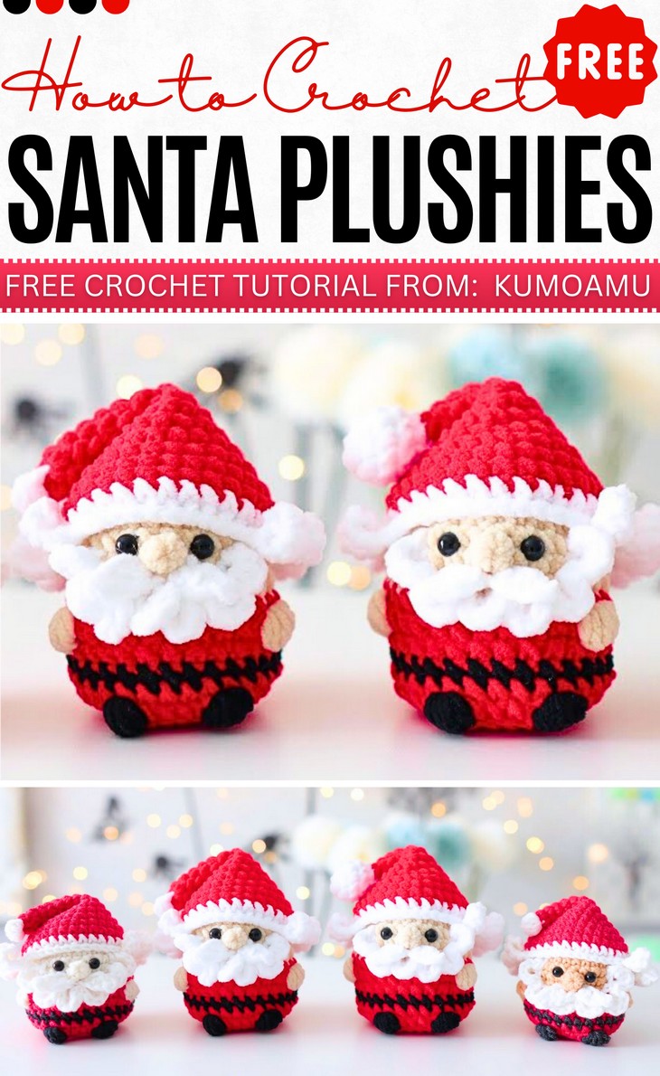 Looking for a cute Santa Claus desktop buddy? Learn how to crochet this kawaii mini Santa amigurumi and plushie with a stitch-by-stitch tutorial from KumoAmu that is quick, easy, and simply adorable. With this design, you will crochet a low-sew Santa Claus buddy either in regular or chenille yarn. You will especially love the slouchy hat, the beard crocheted separately, and the no-sew techniques for ease of finish. Whether as a Christmas tree ornament, keychain, or bag charm, this crochet Santa plushie is simply irresistible. With the popcorn limbs and the detailed hat, this will be a fun project!