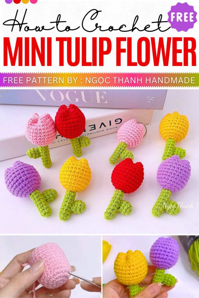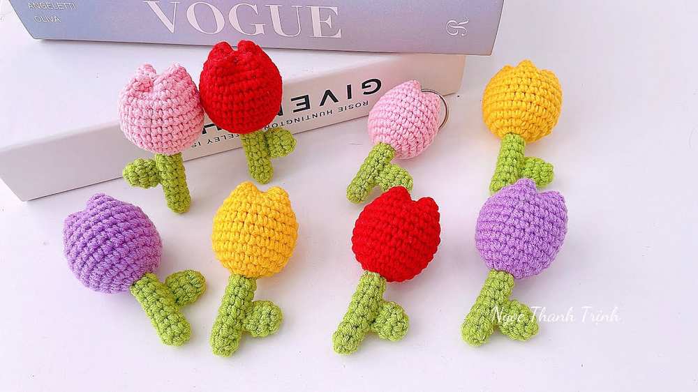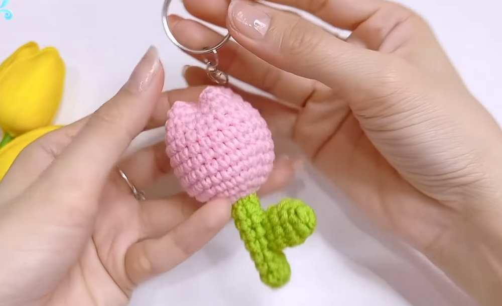 Free Crochet Mini Tulip Flower Keychain Pattern