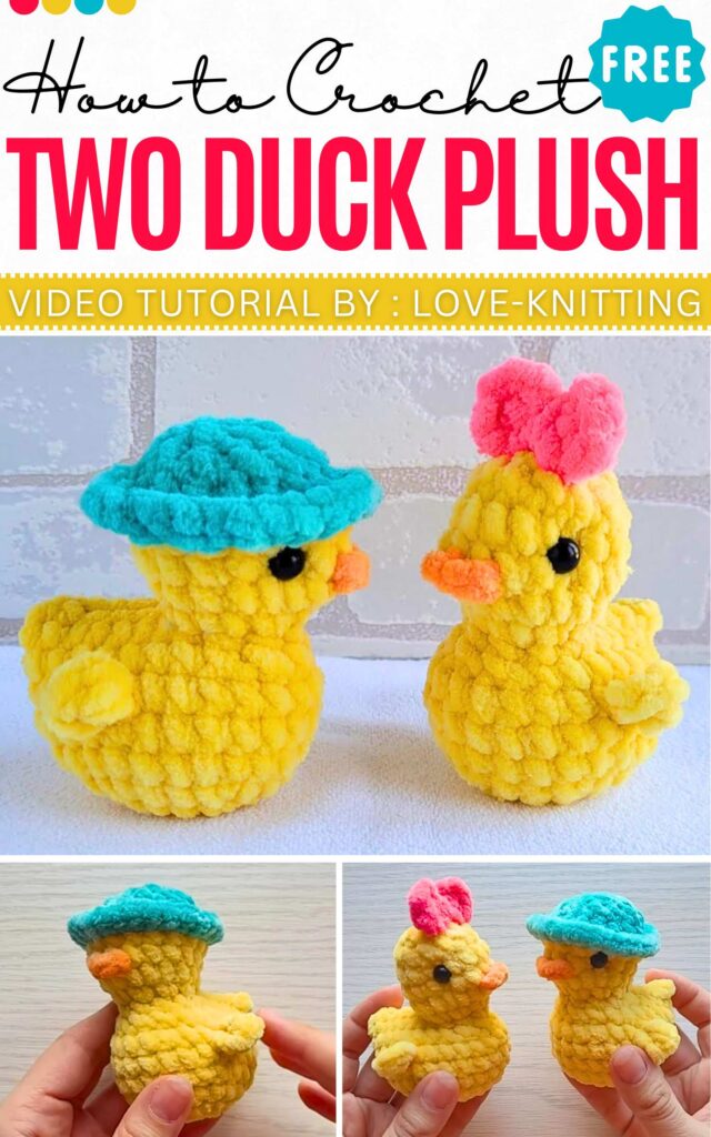 For summer, crochet this pair of a duck plushie wearing a hat and a bow headband. You can gift the first one to a boy and the 2nd one to a girl. This plushie is low-sew, as the wings will be crocheted along with the body. Even the head is worked directly with the body of the plushie. It is inspired by the bathtub duck and will have a flat base.