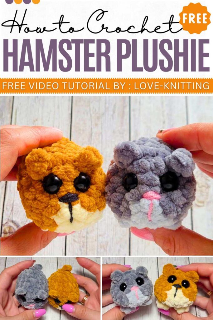 Learn how to crochet a small, meme hamster plushie with no sew-on parts, as the ears and legs are crocheted with the body. Two colors of yarn to distinguish the hamster’s belly and back. After stuffing the body and closing the final rounds, a small tail is added. There is also a cute face embroidery.