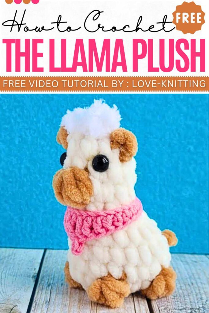 Learn how to crochet a small, llama plushie with a no-sew construction method. The body, legs, head, and ears are all worked as a single amigurumi from the bottom up with color changes and the bobble stitch. There are also white hairs and a collar scarf, using standard cotton yarn instead.