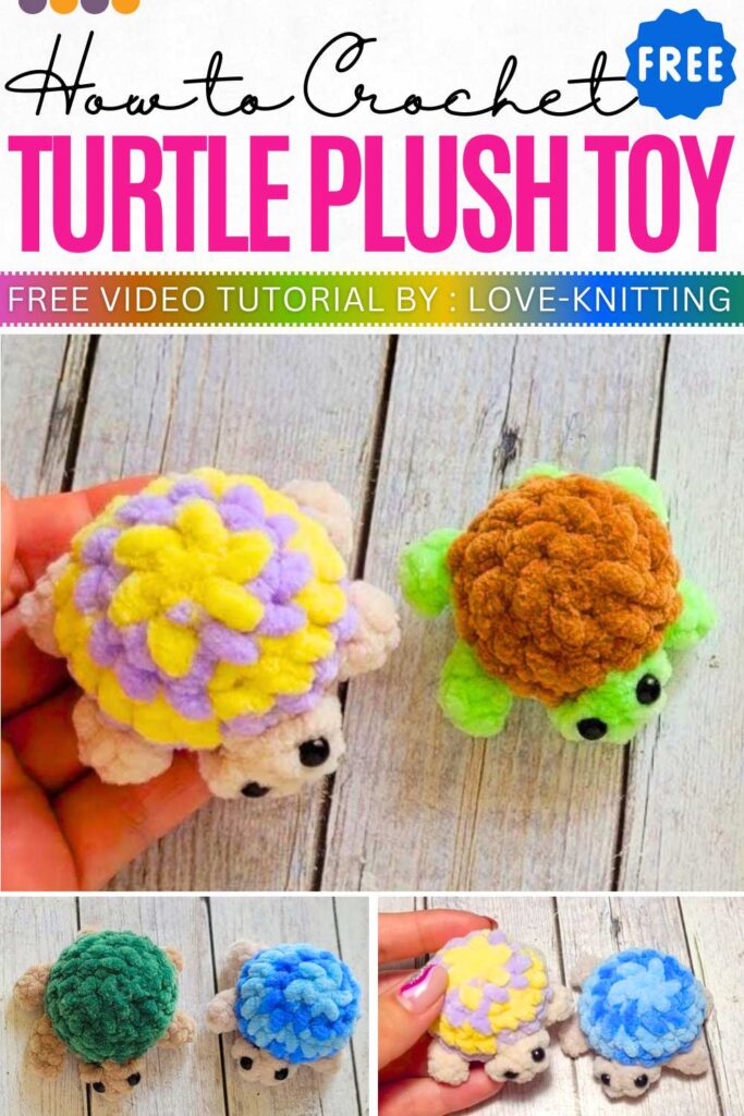 For selling at fall craft fairs, crochet this quick and small turtle keychain using plush yarn in any of four variations. There are mainly two versions: a turtle with a patterned shell and a turtle with a solid shell.