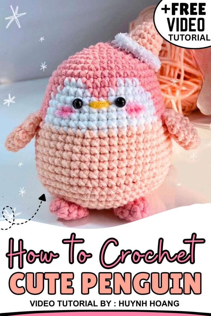 Follow through this tutorial to crochet a gift-ready and chubby penguin amigurumi for girls. This penguin has a medium size and uses unique colors of yarn. These are the pink, white, and light pink.