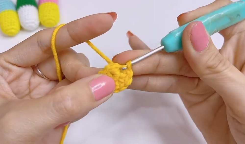 Cut the yarn and leave a tail for sewing.
