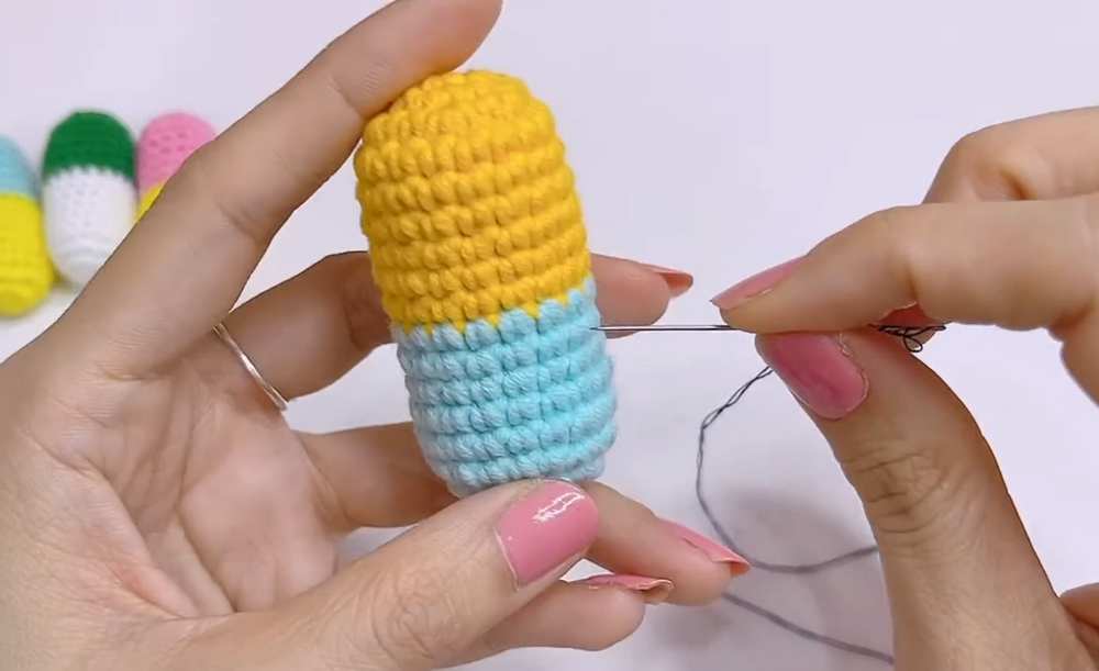 This tutorial demonstrates how to create a simple and cute amigurumi pill capsule. It is worked in continuous rounds using two contrasting yarn colors.