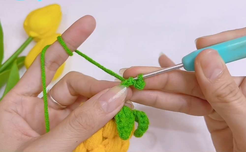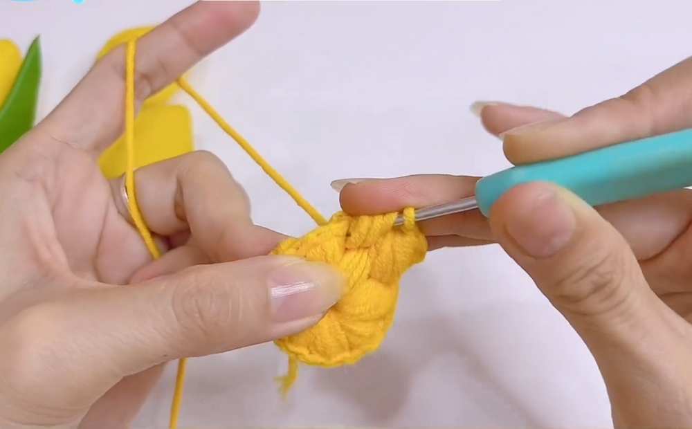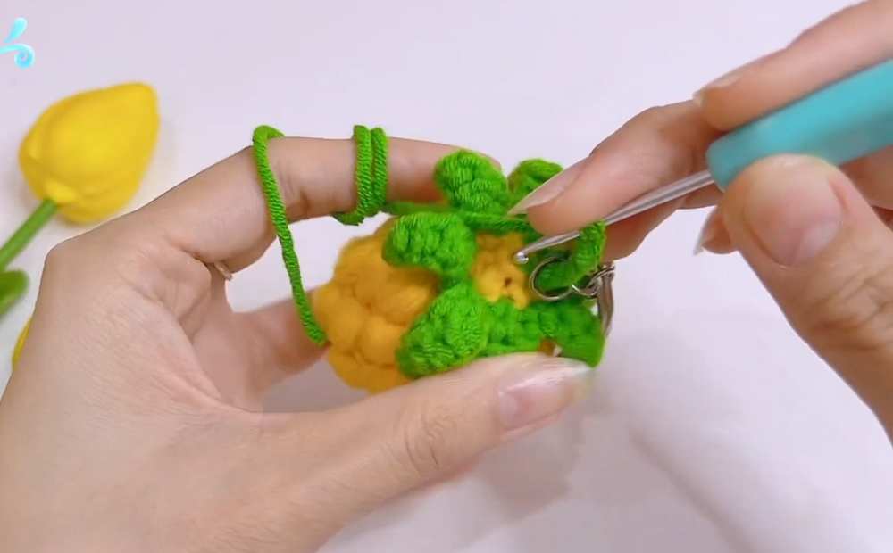 - Yarn: Cotton yarn (Yellow for the body, Green for the leaves)