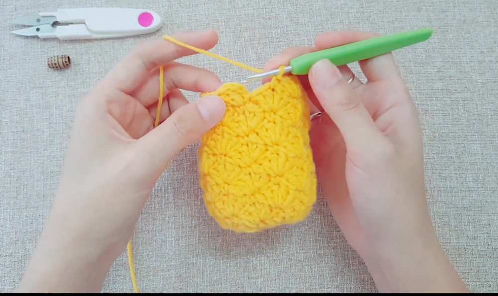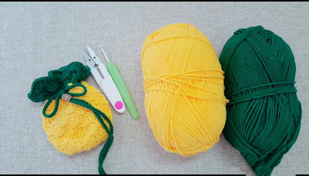 - Tail Management: Use the yarn needle to weave in the yellow and green yarn ends on the interior side of the bag to hide them.