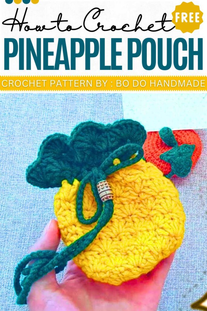 Follow this free pattern for summer to crochet a beautiful pineapple drawstring pouch with a beautiful texture. For the rim and the body, the shell stitch is to mimic the crown of the pineapple and the criss-cross pattern of the pineapple, respectively. This crochet bag is worked from the bottom to the top by working in the rounds.