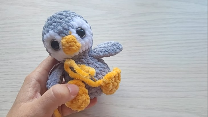 The special thing about this kawaii penguin plushie is a low-sew finish (only for feet) thanks top clever techniques. This is designed to look cute and complete quickly with wings, beak, and head, which are crocheted directly into the body. With bulky plush yarn, it ends up neither too large nor too small.