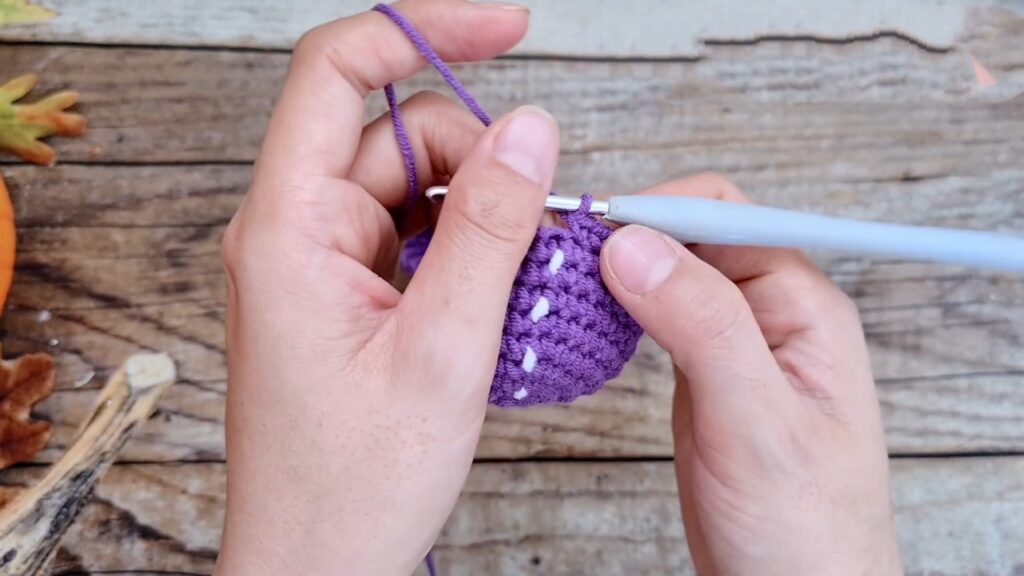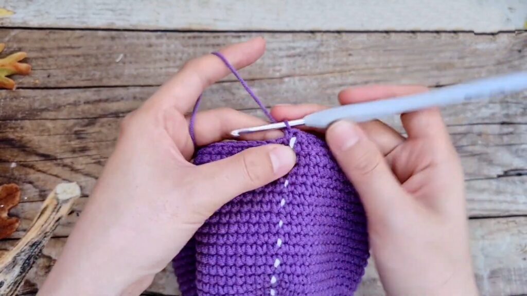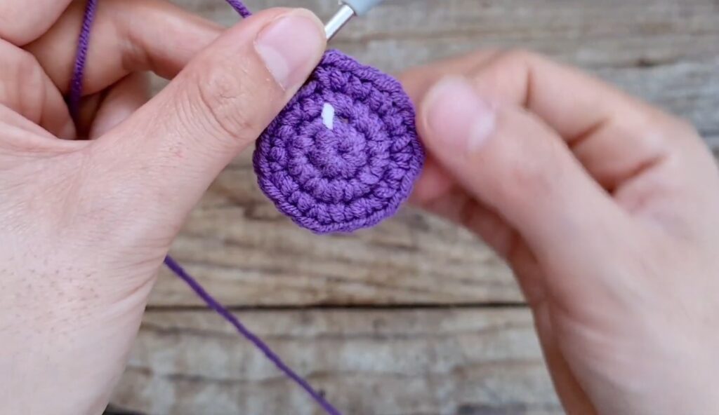 R4: Continue decreasing (4 dc, dec… then 3 dc, dec…) until the hole is small.