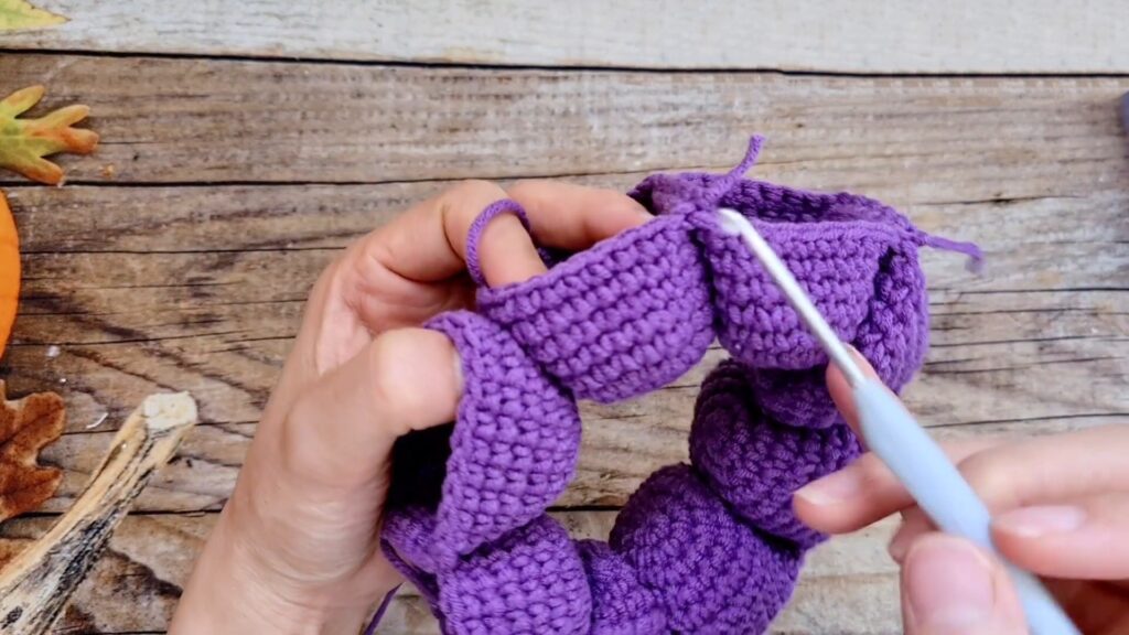 Once all 8 are joined in a ring, the bottom of the octopus will have a large hole.