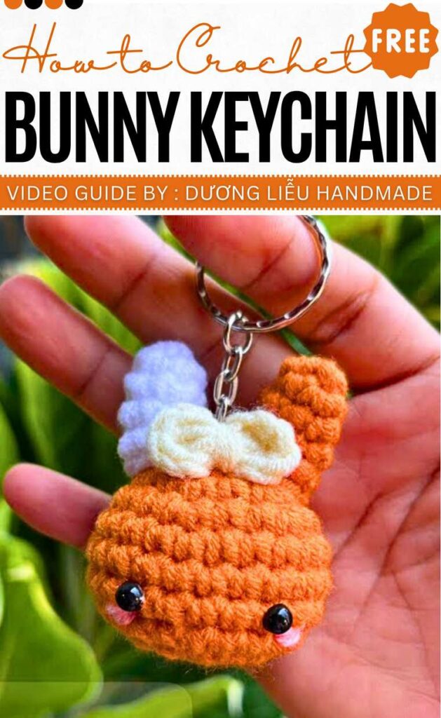 Here is how to crochet a mini “Rabbit-Bear” keychain as a mouthless face of the bunny. It combines the round face of a bear with the long ears characteristic of a rabbit. It will sell like a hot cake in craft fairs, especially fall fairs.