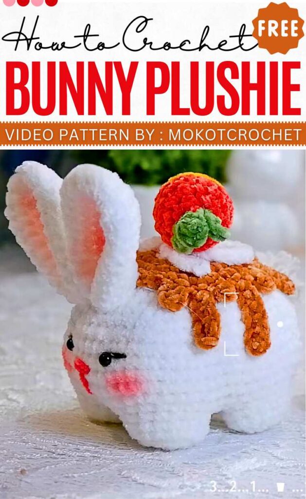 It features an attached bow, no embroidery on the mouth, and a separate color for one of the ears. You can also extend the pattern to crochet a small rabbit doll. Try it for sure.