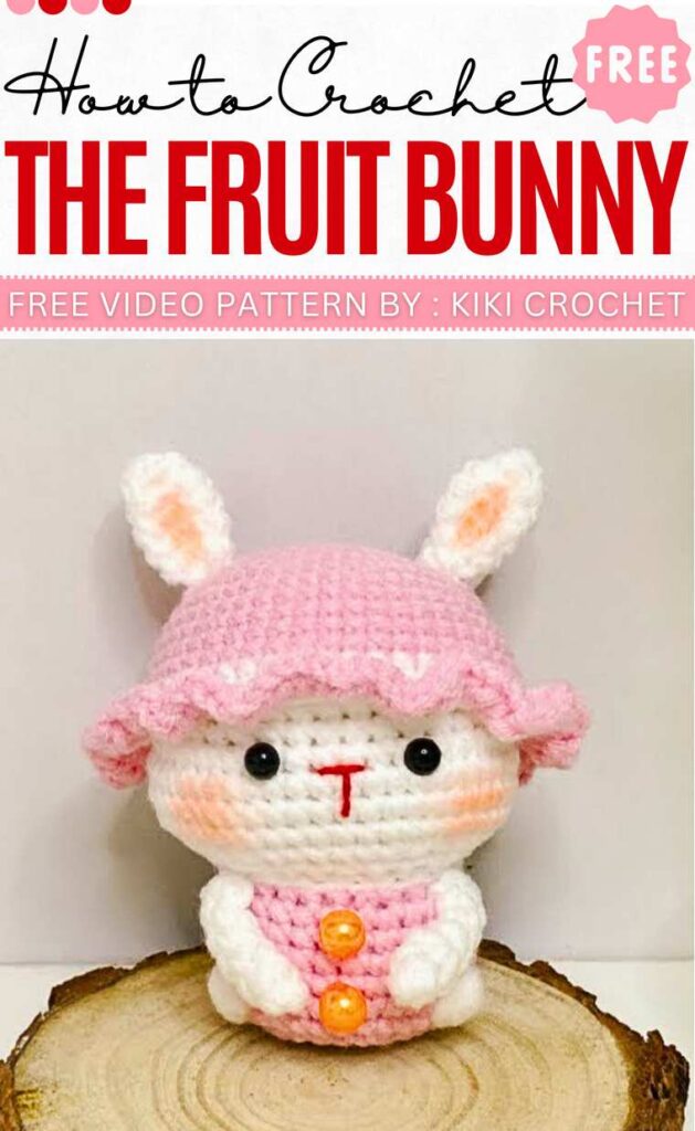 As a spring gift, crochet this cute fruit bunny amigurumi, a 12cm tall rabbit featuring a removable strawberry hat. It will be a ruffled sun hat. The sweater also features buttons, but they are not removable. Use milk cotton yarn and a 2.5mm hook.