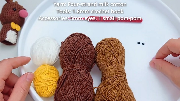 Gather the following suggested tools and materials for crocheting this mini kawaii puppet and ornament, mentioned in the tutorial: