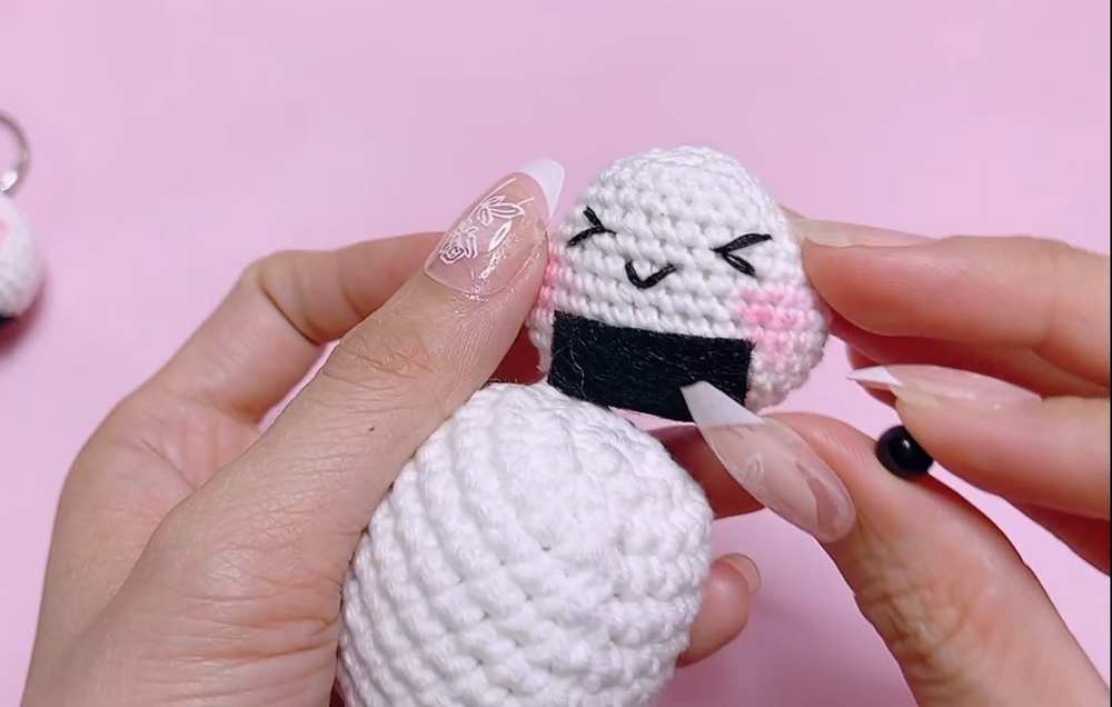 - Keychain: Attach a keychain ring to the top center of the rice ball.
