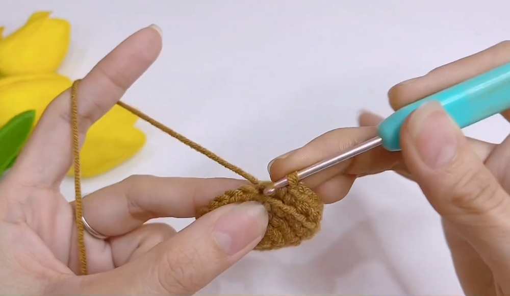 Rnd 3 (Sepals): ch 4. sl st in 2nd ch from hook, sc in next ch, hdc in last ch. Skip 1 st on the base, sl st in the next st. Repeat from * 4 more times to create 5 sepals total.