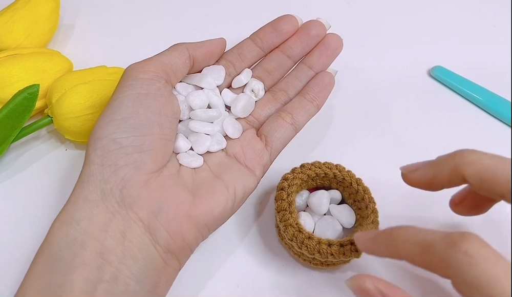 Fasten off and weave in the ends. Fold Rnd 10 down to form the rim of the pot.