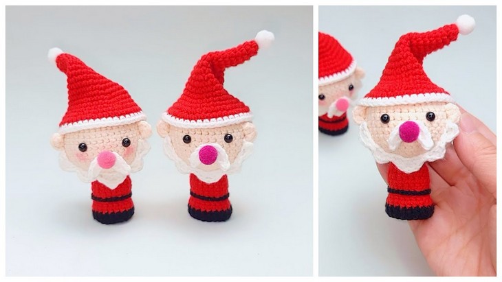 The 4th and last crochet Christmas puppet tutorial from Hui Crochet is here, and this is based on your favorite Christmas character! So, learn how to crochet this kawaii mini Santa Claus finger doll and puppet that is unique in look but simply adorable. You will love its Slouchy Santa hat, the pom-pom nose, and basic beard that is a bit funny! Combining with the puppet sleeve, it becomes an ornament, a desktop buddy, and a playable toy for kids. Just like gingerbread, it is quick, low-sew and perfect for beginners. However, it will take a bit longer to crochet like tree pattern.