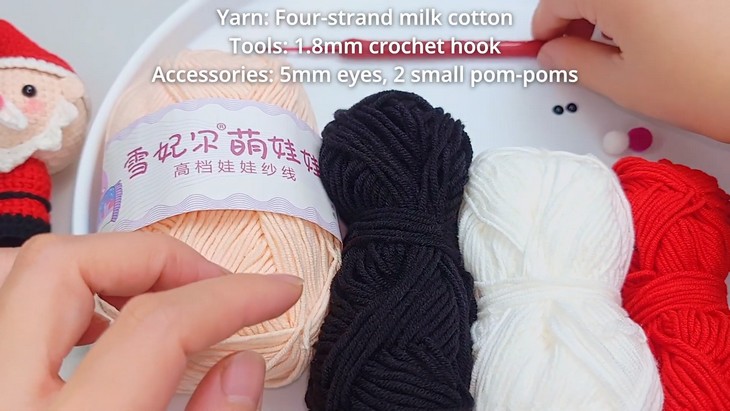 - Yarn (in colors for Santa, such as red, white, skin tone, and black). 4-ply Milk Cotton Yarn